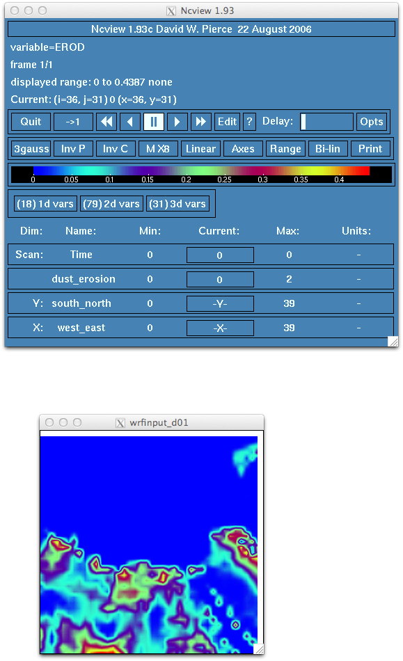 ! Visualize the simulated dust fields (ncview plots, Time series and 2d plots, animations)